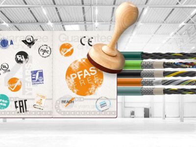 Come le sostanze chimiche della famiglia dei PFAS, alcuni composti del politetrafluoroetilene (PTFE in breve) sono considerati “forever chemicals”, ovvero sostanze chimiche eterne, e quindi potenzialmente dannosi per l’ambiente, le persone e gli animali. L’Unione Europea sta già valutando possibili restrizioni e divieti per l’utilizzo di queste sostanze. Con il sigillo “PFAS-free” igus identifica i cavi chainflex privi di queste sostanze chimiche, offrendo ai clienti sicurezza operativa, anche nel caso di futuri divieti legislativi.