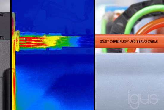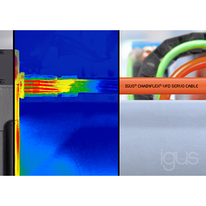 Per prevenire danni a questi nuovi motori ultra compatti, igus – al termine di una fase di sviluppo e di test durata cinque anni – propone una soluzione sotto forma di un nuovo materiale isolante per i suoi cavi chainflex motore e servomotore VFD. Grazie all’esperienza maturata nel settore dei polimeri ad alte prestazioni, gli specialisti in motion plastics hanno sviluppato un materiale che ha superato con successo numerosi test di laboratorio e prove in condizioni reali. Per esempio nel test 5034 il cavo servomotore CF29 ha superato 45 milioni di corse con un raggio di curvatura di 7,2 x d. Il nuovo materiale – rispetto ad altri materiali più comuni – soddisfa i requisiti termici sempre più stringenti delle ultime generazioni di motori. Così, igus è l’unico fornitore al mondo in grado di offrire cavi motore e servomotore VFD testati per un utilizzo dinamico prolungato in catena portacavi, con le caratteristiche termiche ed elettriche richieste dalle nuove generazioni di VFD.