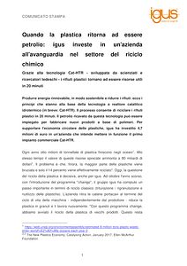 Quando la plastica ritorna ad essere petrolio: igus investe in un’azienda all’avanguardia nel settore del riciclo chimico