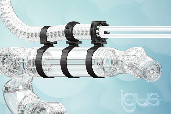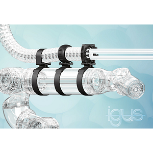 Se uomo e macchina devono condividere uno stesso spazio di lavoro, il tema della sicurezza diventa cruciale. Partendo da questo presupposto, igus ha sviluppato un semplice sistema per fissare catene portacavi e/o tubi di protezione sui cobot. Questi supporti Lean Robotics vengono prodotti tramite stampaggio a iniezione in varie dimensioni standard e risultano particolarmente vantaggiosi dal punto di vista economico. In pochi istanti, il supporto può essere montato su ogni tipo di robot con un semplice velcro. L’utilizzo di questa nuova fascetta, disponibile in tre versioni, assicura la guida sicura dei condotti.